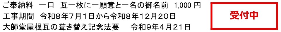新しい瓦一枚一枚には、皆様のお名前を記入して、永く大師堂に奉納いたします。